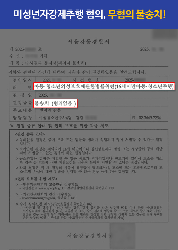 미성년자강제추행 혐의, 억울한 고소에 대응해 무혐의 불송치